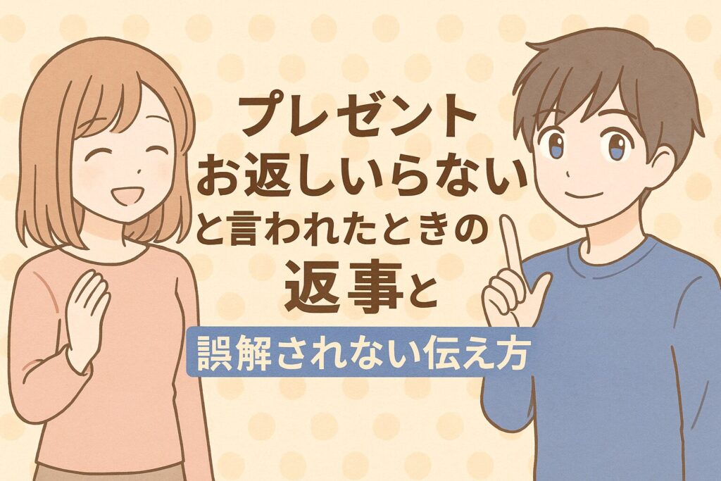 「お返しはいらないよ」って伝えたいけど、どんな言い方がベストか迷う人、多いですよね。